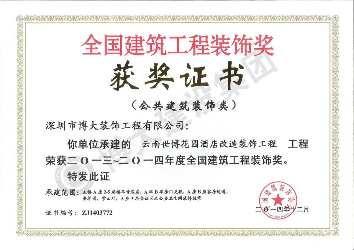 中國建筑工程裝飾獎(云南世博花園酒店-裝飾)